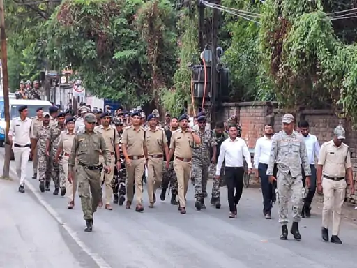 लोगों को स्वतंत्र, सुरक्षित और शांतिपूर्ण मतदान के लिए प्रेरित करना है। उन्होंने उम्मीद जताई कि शहर के बीच स्थित घनी आबादी वाले इन इलाकों में पुलिस और प्रशासन का संयुक्त फ्लैग मार्च निर्वाचन के प्रति मतदाताओं का विश्वास बढ़ाएगा।