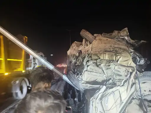 जानकारी के मुताबिक हादसे में कार किसी खिलौने की तरह चिपक गई है। उसमें सवार पांच लोग फंस गए। उन्हें निकालने से पहले ही दो लोगों की मौत हो चुकी थी। गंभीर रूप से घायल तीन लोगों को अस्पताल में भर्ती कराया गया है।