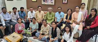 बिलासपुर| रायगढ़ कथक घराने के गुरु रामलाल बरेठ को हाल ही में पद्मश्री सम्मान से सम्मानित किया गया। इस अवसर पर अटल बिहारी वाजपेयी यूनिवर्सिटी की राष्ट्रीय सेवा योजना इकाई के द्वारा पद्मश्री बरेठ को शॉल व श्रीफल देकर सम्मान किया गया। इस दौरान कार्यक्रम समन्वयक डॉ. मनोज सिन्हा ने श्री बरेठ व उनके पुत्र भूपेंद्र बरेठ को एनएसएस का बैच पहनाया। पद्मश्री बरेठ ने एनएसएस के स्वयंसेवकों को अपने कला साधना व संघर्षों के बारे में बताकर प्रोत्साहित किया। इस अवसर पर रेखा गुल्ला, सुधा शर्मा, शशि किरण साहू, शत्रुघ्न घृतलहरे, यूपेश चंद्राकर, मोना कंेवट, मुकेश सोनी, विभांशु अवस्थी सहित अन्य मौजूद रहे।