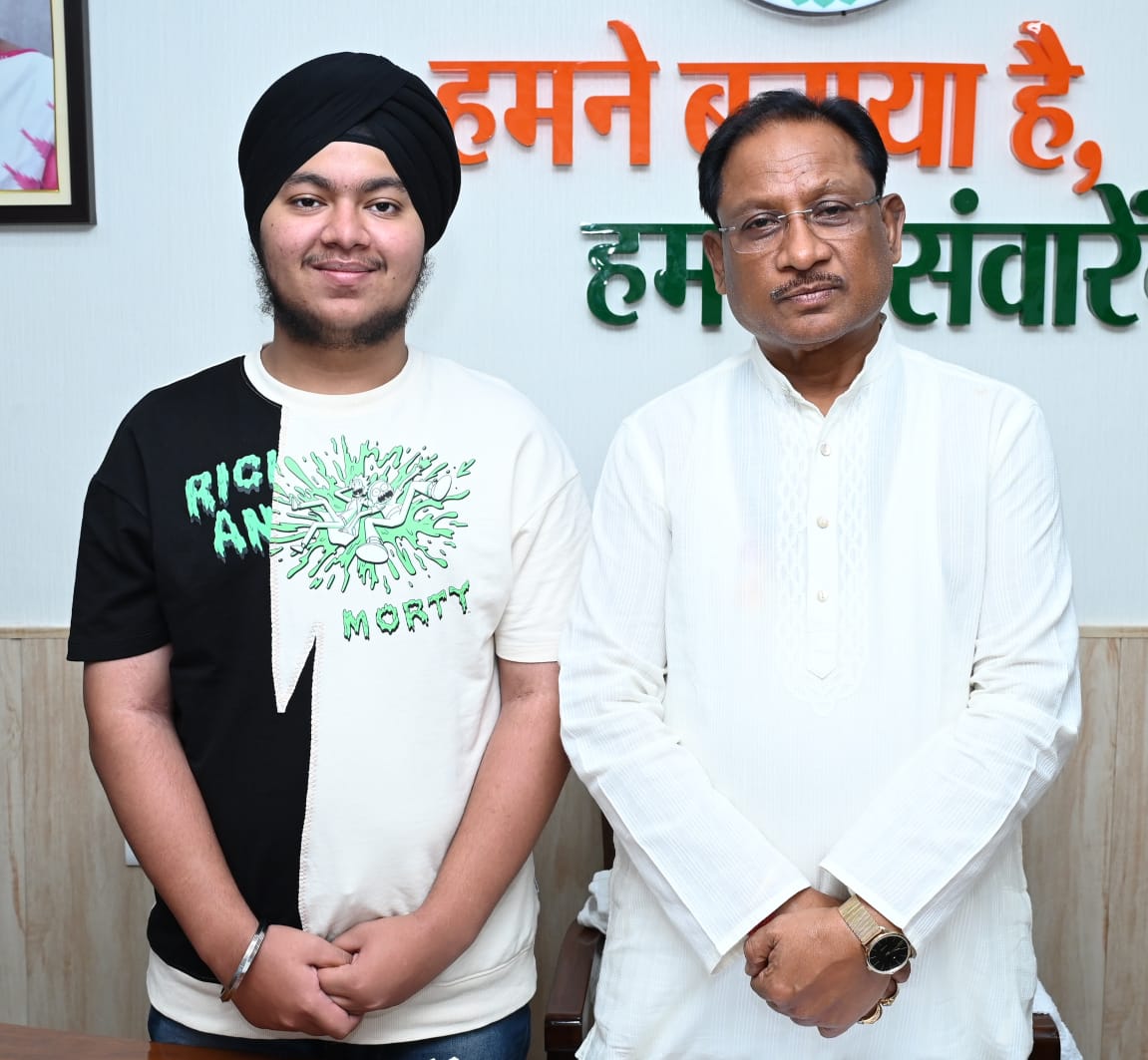 सीबीएसई बारहवीं बोर्ड के छत्तीसगढ़ के टॉपर साहेब सिंह ने मुख्यमंत्री विष्णु देव साय से की मुलाकात