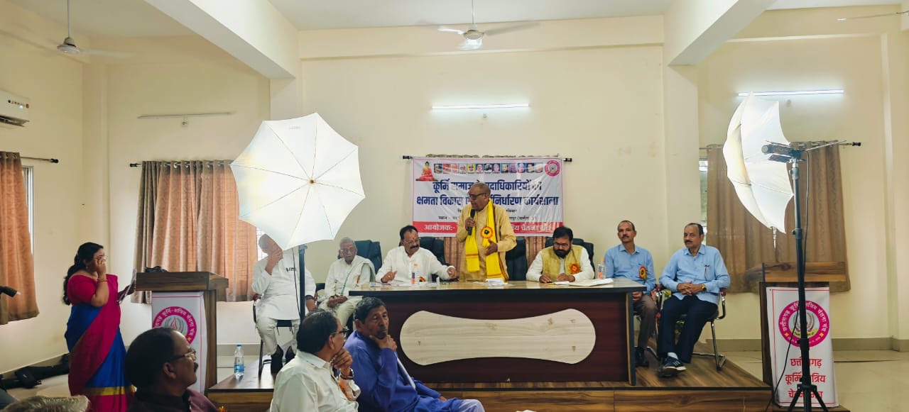 बिलासपुर :- छत्तीसगढ़ कूर्मि क्षत्रिय चेतना मंच द्वारा आयोजित छत्तीसगढ़ में निवासरत समस्त फिरका 30 प्रकार के कूर्मि उपजाति समूह के प्रमुखो एवं संगठन पदाधिकारियों का क्षमता विकास प्रशिक्षण कार्ययोजना निर्धारण- कार्यशाला का आयोजन वन चेतना केंद्र सकरी बिलासपुर में सफलता पूर्वक संपन्न हुआ। इसमें रायपुर, बिलासपुर, दुर्ग भिलाई, जांजगीर -चांपा,सक्ति , मनेंद्रगढ़, कोरिया, कवर्धा पेंड्रा मरवाही, मुंगेली, बेमेतरा , पामगढ़ तखतपुर, पाली, कटघोरा ,कोरबा से 155 समाज प्रमुखों ने हिस्सा लिया। इसमें समाज मे व्याप्त रूढ़िवादी परंपरा, वैज्ञानिक सोंच, शिक्षा , व्यवसाय को बढ़ावा, प्रगतिशील कूर्मि समाज के समग्र विकास हेतु युवाओं तथा महिलाओं की भूमिका को सुनिश्चित करने व आधुनिक समाज में वर्तमान परिदृश्य में हो रहे बदलाव पर लाए गए पूर्व प्रस्ताव के क्रियान्वयन में धीमी गति क्यों ? जैसे विषय पर समीक्षा उपरांत नवीन प्रस्ताव पर चर्चा हुई। प्रथम सत्र के मुख्य अभ्यागत विधायक माननीय व्यास नारायण कश्यप जांजगीर चांपा थे एवं द्वितीय सत्र के मुख्य अभ्यागत माननीय विधायक धरमलाल कौशिक जी रहे ।मंच में विधायक द्वय का शाल श्रीफल बूके से अभिनंदन किया गया।