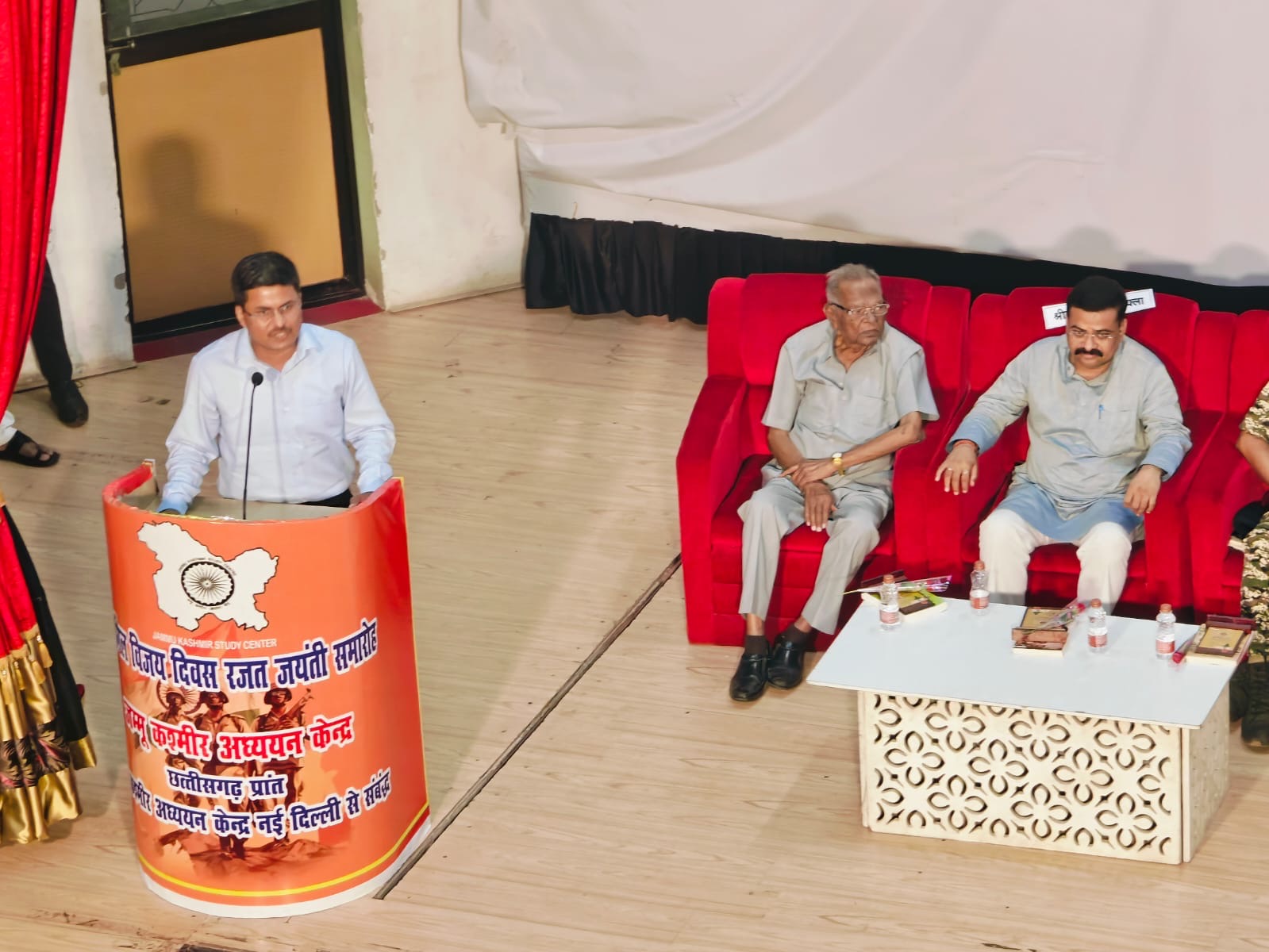 बिलासपुर – 26 जुलाई कारगिल विजय दिवस रजत जयंती समारोह को मानने स्व.लखीराम अग्रवाल ऑडिटोरियम बिलासपुर में कश्मीर अध्ययन केंद्र द्वारा रखा गया। जिसके मुख्य अतिथि संजीव शुक्ला पुलिस महानिरीक्षक बिलासपुर रेंज,कार्यक्रम अध्यक्षता अवनीश शरण,मुख्यवक्ता नारायण नामदेव सहसंघ प्रचारक राष्ट्रीय स्वयं सेवक संघ,विशिष्ट अतिथि रजनीश सिंह पुलिस अधीक्षक बिलासपुर, अवजीत प्रभात सीआरपीएफ एसिस्टेंड कमांडेंट, ब्रजेश शुक्ला सचिव जम्मू कश्मीर अध्ययन केंद्र छग प्रांत थे। सभी अतिथि वक्ताओ ने कारगिल विजय दिवस पर देशवासियों को शुभकामनाएं एवं बलिदानी वीर जवानों को श्रद्धांजलि के साथ नमन किये । अपने अध्यक्षीय उद्बोधन में सूबे के मुखिया अवनीश शरण ने कहा कि 1999 के कारगिल युद्ध आज भारतीय सैन्य को विश्व के सर्वोच्च सैन्य शक्ति के रूप में विस्थापित किया हैं हम सब आज कारगिल युद्ध में शहीद अमर जवानों को याद कर रहें हैं। ऐसे में आज जरूरी हो गया है की जब हमारे देश के जवान किसी ट्रेन,बस या सार्वजनिक जगहों में मिले तो उन्हें सम्मान स्वरूप स्टेंडिंग ओवेशन दे और उन्हें ट्रेन बस में सीट रिक्त करके यथा सम्भव स्थान देवें यही देश के जवानों को सच्चा सम्मान होगा।