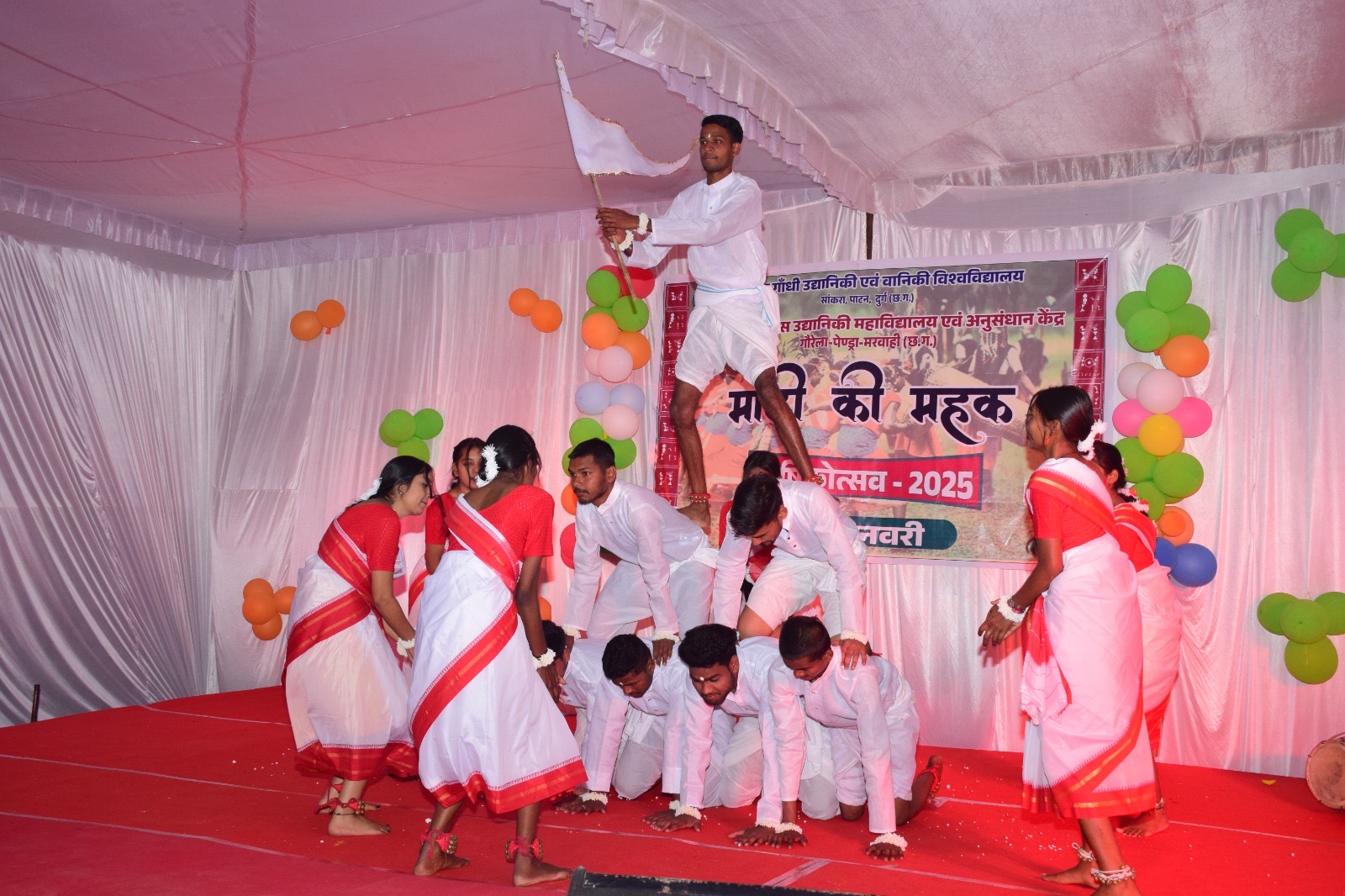 मंच संचालन सांस्कृतिक प्रभारी डॉ. सोनलउपाध्याय (सहायक प्राध्यापक– पादप प्रजनन एवं अनुवांशिकी) द्वारा किया गया। इसकार्यक्रम के नोडल अधिकारी डॉ भावना पंडा (सहायक प्राध्यापक–फल विज्ञान) रहीं।कार्यक्रम में विभिन्न सांस्कृतिक गतिविधियों का आयोजन किया गया, जिसमें नृत्य, संगीत, नाटक और कविता पाठ शामिल थे। छात्रों ने अपनी प्रतिभा का प्रदर्शन करते हुए दर्शकोंका दिल जीत लिया। विशेष रूप से, छत्तीसगढ़ के लोक नृत्य ने सभी का ध्यान आकर्षितकिया और तालियों की गड़गड़ाहट से कार्यक्रम भर गया।