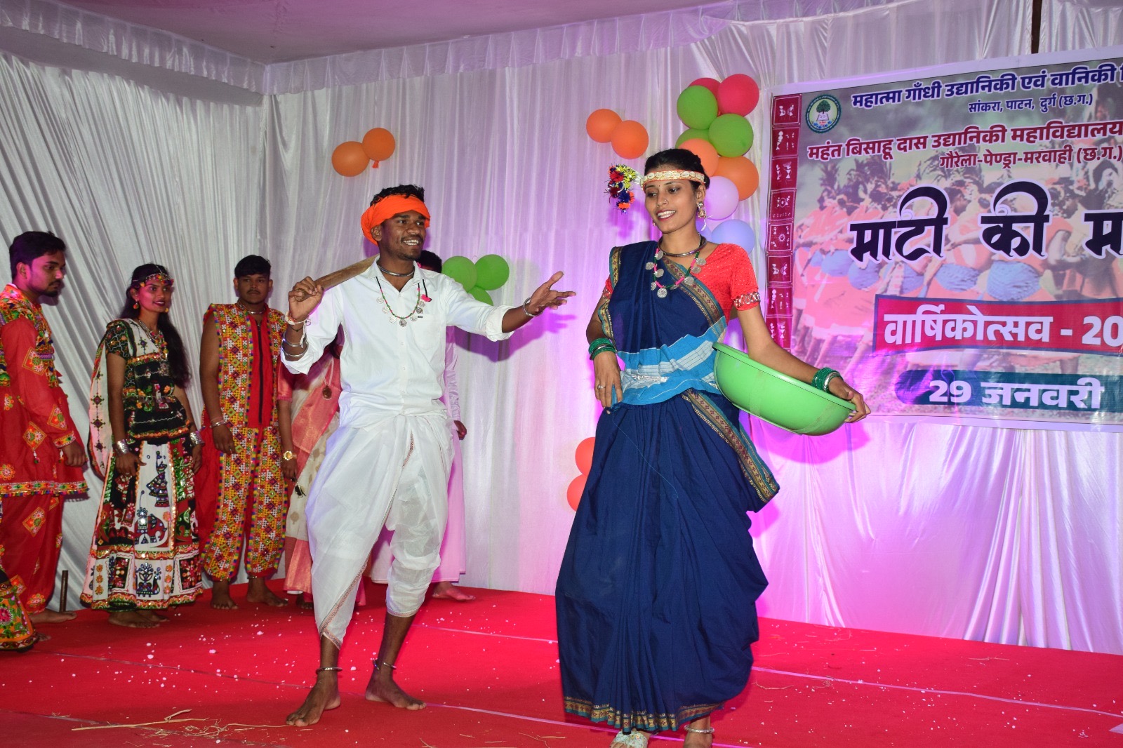 कॉलेज के वार्षिक समारोह ने एक बार फिर साबित कर दिया कि महंत बिसाहू दास उद्यानिकी महाविद्यालय एवंअनुसंधान केंद्र, गौरेला–पेंड्रा–मरवाही न केवल शिक्षा में बल्कि सांस्कृतिक गतिविधियों मेंभी पीछे नहीं है। यह कार्यक्रम यह दर्शाता है कि युवा पीढ़ी में अपने सपनों को साकार करनेकी कितनी ऊर्जा और प्रवृत्ति है। छात्र– छात्राओं द्वारा भव्यतम रूप से बस्तर का प्रख्यातमाड़िया नृत्य, मनमोहक पंथी नृत्य, भरथरी नृत्य, भरतनाट्यम तथा ओड़िसी प्रस्तुत कियागया। एकल गायन के अंतरगर्त छात्र अनुज साहू, निखिल भारद्वाज एवं छात्रा पायल जैन, शैली सिंह की प्रस्तुति ने सबका दिल जीत लिया।