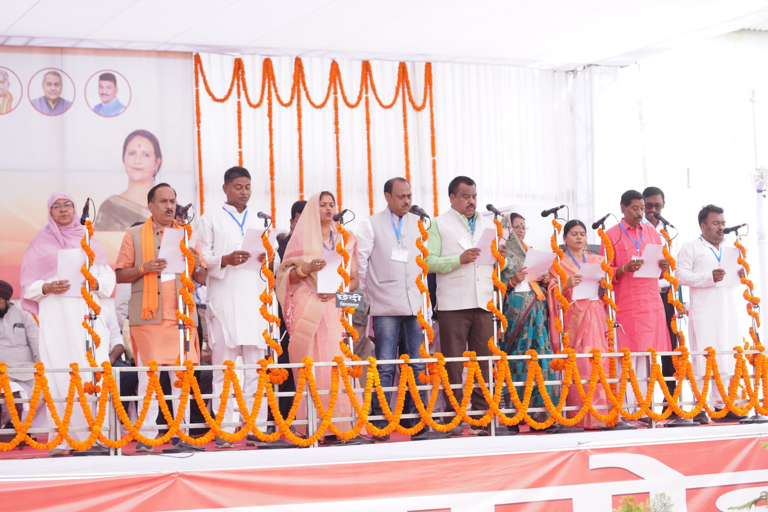 उप मुख्यमंत्री अरुण साव, केंद्रीय राज्य मंत्री तोखन साहू एवं विधायकों की मौजूदगी में ली शपथ