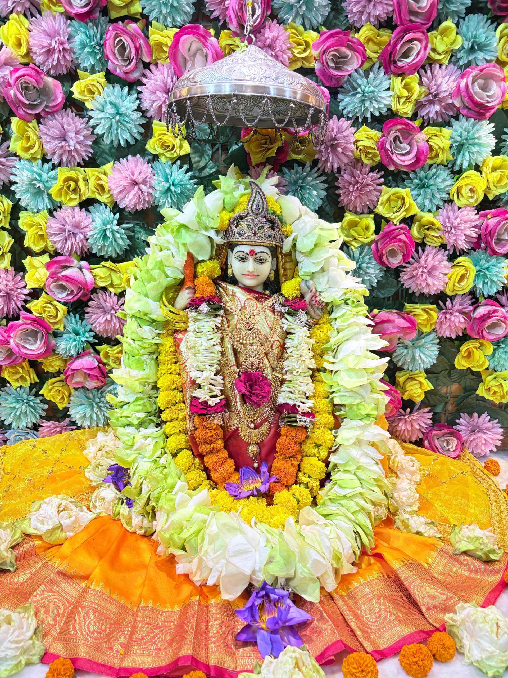 बिलासपुर।श्री पीताम्बरा पीठ त्रिदेव मन्दिर सुभाष चौक सरकण्डा बिलासपुर छत्तीसगढ़ में चैत्र नवरात्र के पावन पर्व पर बिलासपुर शहर एवं विश्व कल्याण के लिए श्रीमद् देवी भागवत महापुराण कथा का आयोजन किया गया है।पीठाधीश्वर आचार्य डा. दिनेश जी महाराज ने बताया कि इसी कड़ी में नवरात्रि के प्रत्येक दिन माँ श्री ब्रह्मशक्ति बगलामुखी देवी का पूजन श्रृंगार भिन्न-भिन्न देवियों के रूप में किया जा रहा है, एवं प्रातः कालीन श्री शारदेश्वर पारदेश्वर महादेव का रुद्राभिषेक, श्री महाकाली, महालक्ष्मी, महासरस्वती देवी का श्रीसूक्त षोडश मंत्र द्वारा दूधधारियापूर्वक अभिषेक, परमब्रह्म मर्यादा पुरुषोत्तम श्रीराम का श्रृंगार,पूजन, सिद्धिविनायक जी का पूजन श्रृंगार किया गया।