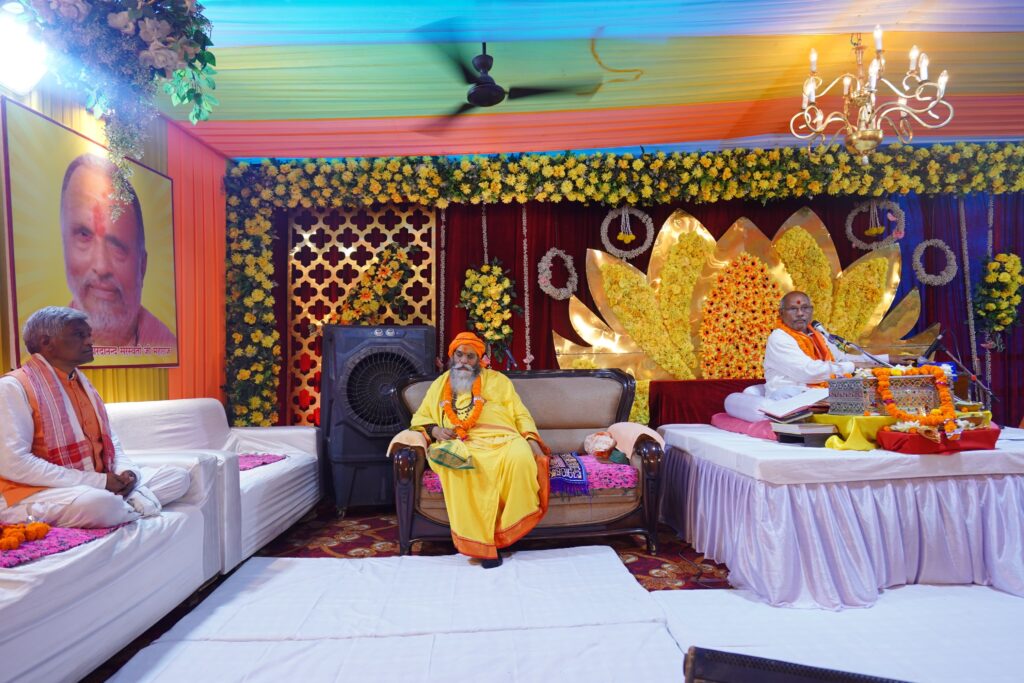 पीठाधीश्वर आचार्य डॉ दिनेश जी महाराज ने कहा कि “यत्र नार्यस्तु पूज्यन्ते रमन्ते तत्र देवता” जहां नारी का सम्मान होता है वही देवता का निवास होता है।”कर्मण्येवाधिकारस्ते मा फलेषु कदाचन” अर्थात कर्म ही सर्वोपरि है।हमारे जीवन में उपासना का अत्यधिक महत्व है प्रत्येक मनुष्य को अपने जीवन में यात्री पूर्वक भगवान की उपासना करनी चाहिए। देवी को माया माया कह निंदा करने और कोसने से नहीं माँ माँ कहने से लोक और परलोक में समृद्धि,सुख और मोक्ष की प्राप्ति होती है,अज्ञानियों के पास जो संसार है वह भी माँ का दिया हुआ है परंतु संसार उसको ही अनुकूल मानता है जो धर्मात्मा और माँ का भक्त होता है अपने निर्धन और प्रतिकूल संसार को सधने और अनुकूल करने के लिए कलयुग में चण्डी माँ और विनायक भगवान अधिकृत हैं। “कलौं चण्डी विनायकौ” देवी भागवत की कथा प्रमाण है कि जिन जिन राक्षसौ और राक्षसी स्वभाव वालों ने भगवान को देर किनारे करके माया को अपनाया है वह रावण की तरह ही संपत्ति,संतति और समान पाने के बाद भी कंगाल हुए और मृत्यु को प्राप्त हुए हैं,मोक्ष को नहीं। इस माया को माँ के कृपा देखते हुए उपास्य और दर्शनीय बनाये।