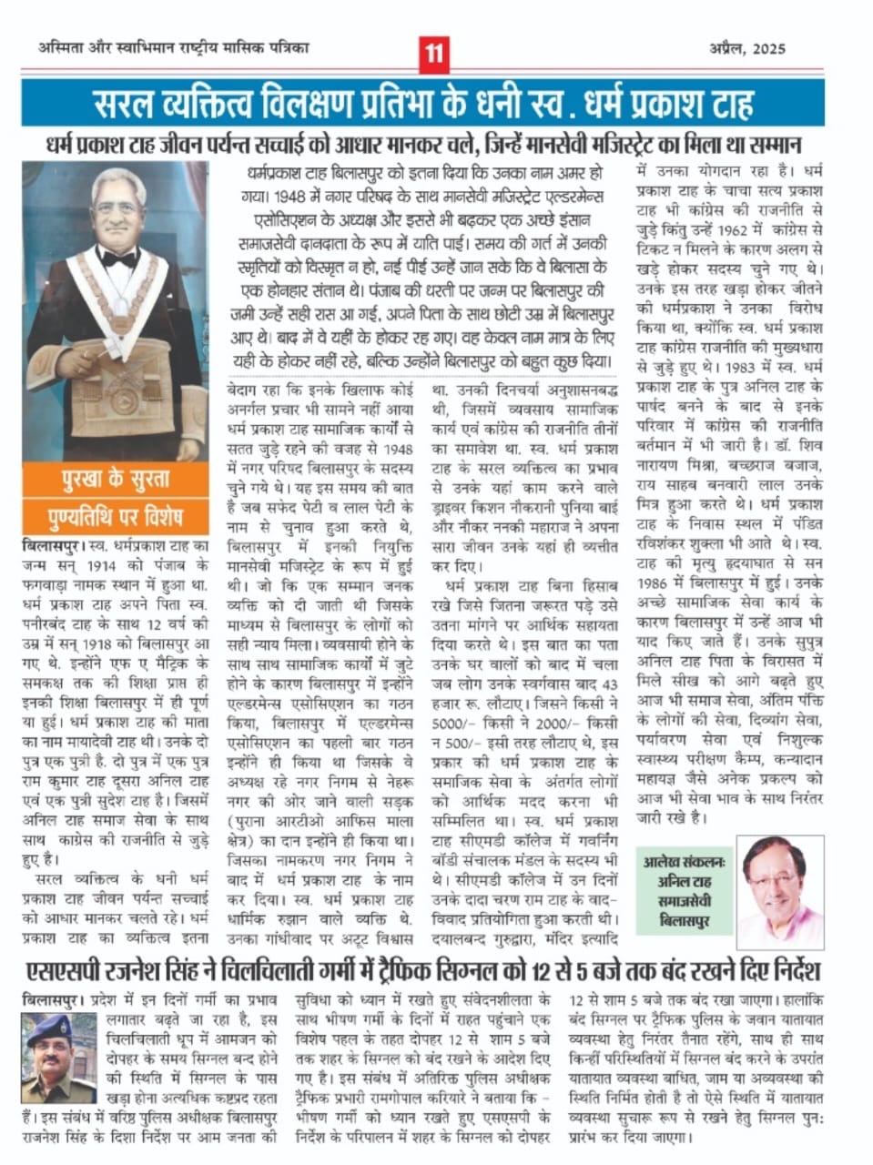 आलेख संकलन- अनिल टाह समाज सेवी बिलासपुर