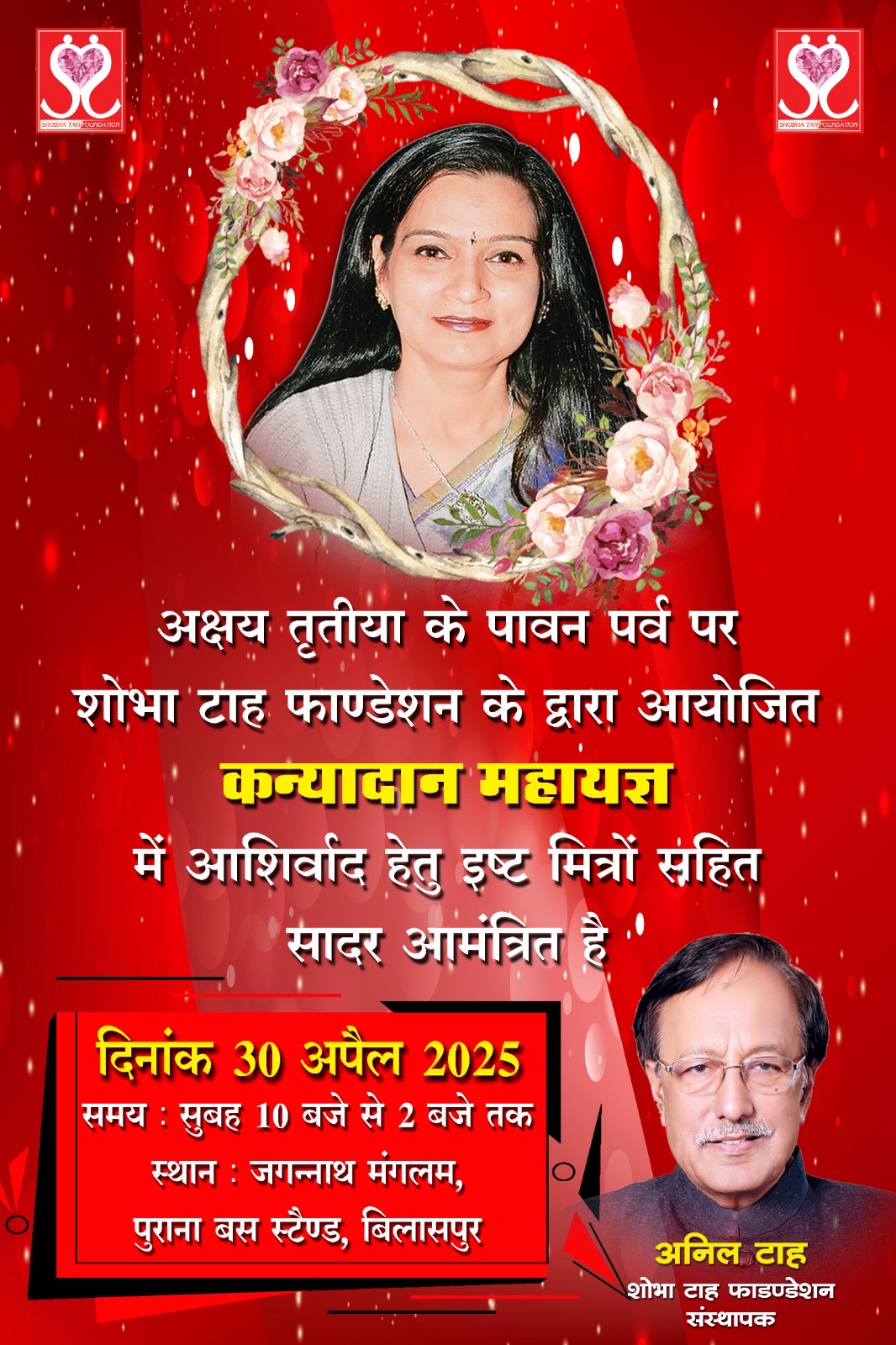 शोभा टाह फाउंडेशन द्वारा 11 जोड़ों का मंगल परिणय कन्यादान महायज्ञ 30 अप्रैल को