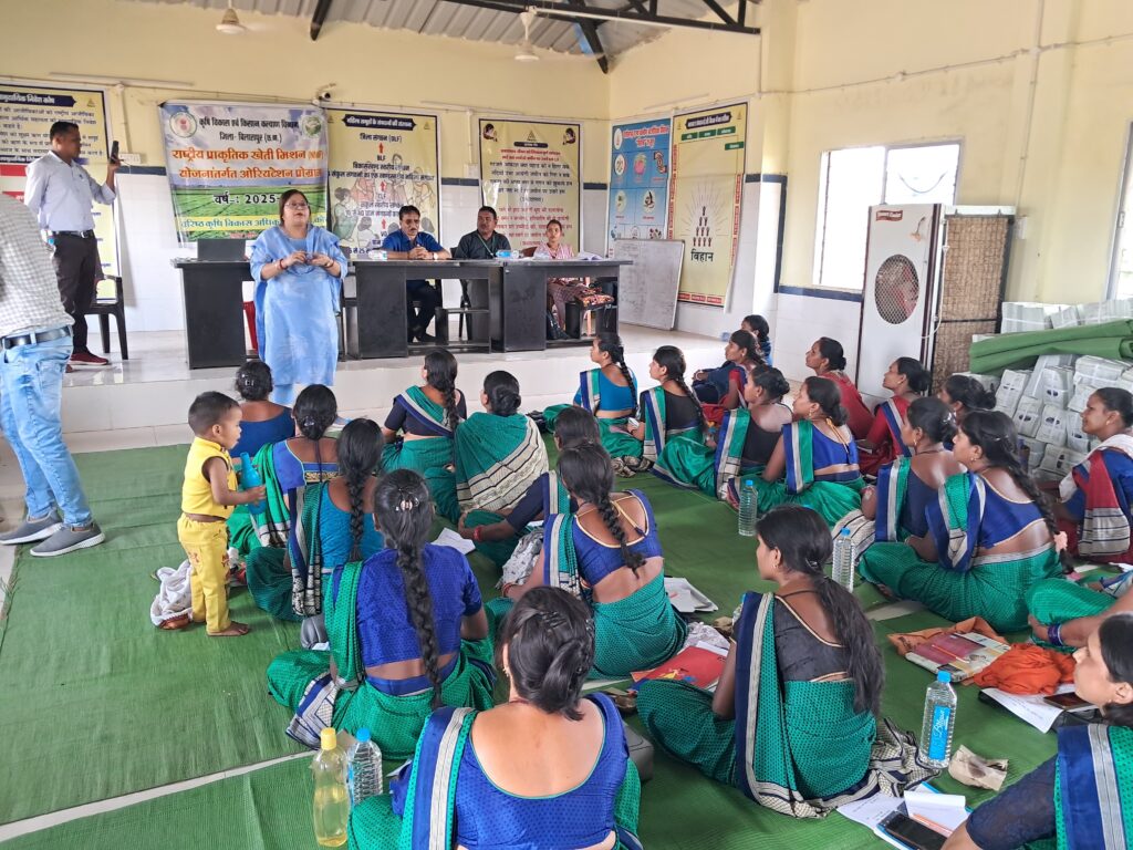 बिलासपुर, 13 मई 2025/कृषि विकास एवं किसान कल्याण मंत्रालय भारत सरकार की राष्ट्रीय प्राकृतिक खेती मिशन के तहत कोटा ब्लॉक के करगीकला में प्रशिक्षण कार्यक्रम आयोजित किया गया। राष्ट्रीय प्राकृतिक खेती मिशन के तहत 21 कलस्टर में प्रति क्लस्टर दो कृषि सखी का चयन जिला समिति के द्वारा किया गया है, 42 चयनित कृषि सखियों को एक दिवसीय प्रशिक्षण दिया गया। ये कृषि सखियां कोटा ब्लॉक के 2665 किसानों को जैविक खेती के विषय में जानकारी देंगी।