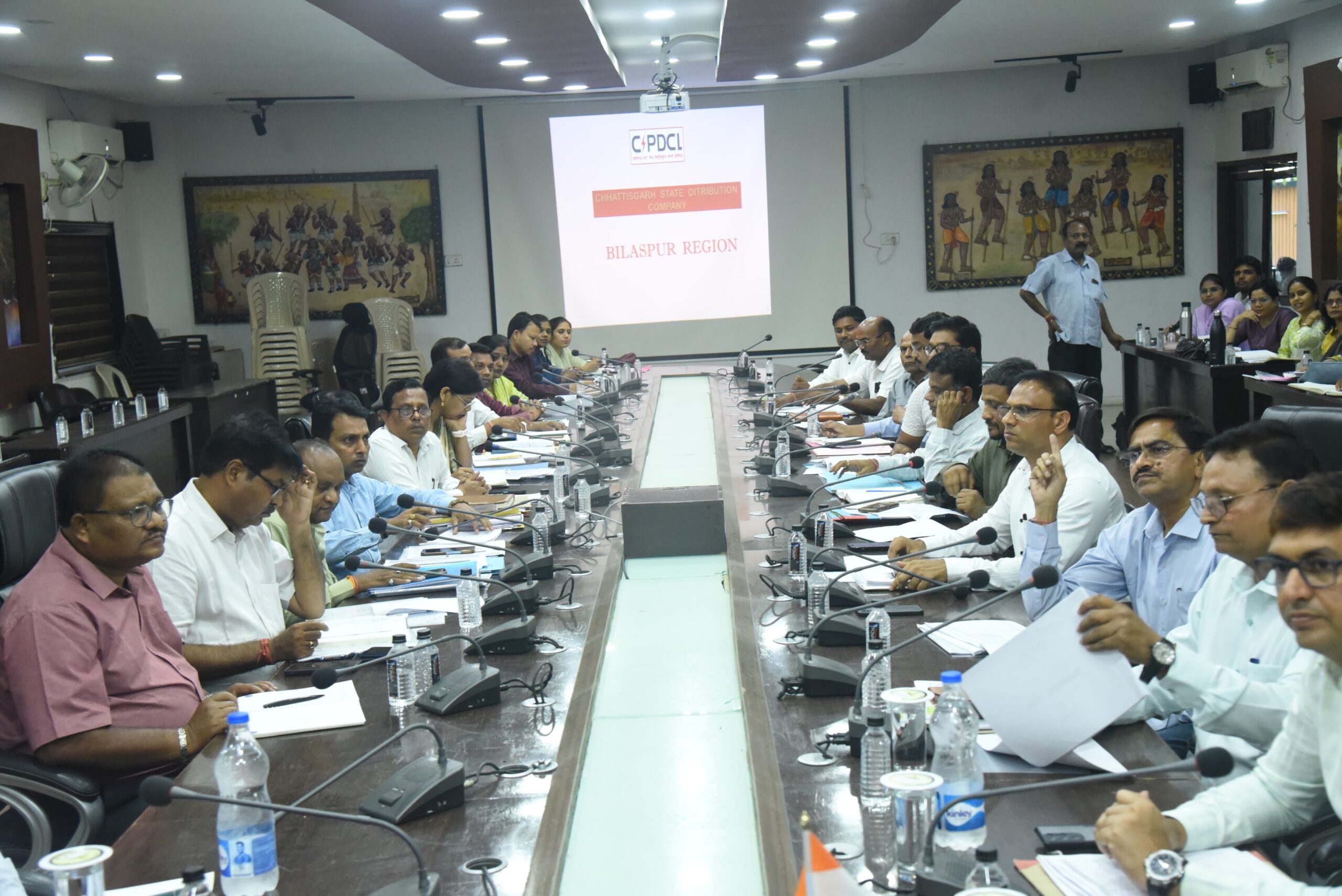 बैठक में डॉ. रोहित यादव, अध्यक्ष, छ.स्टे.पॉ.डि.कं. लिमि., के द्वारा बिलासपुर जिले के अंतर्गत सभी प्रकार के विकास कार्यों यथा आर.डी.एस.एस. योजना पी.एम. सूर्यघर योजना, स्मार्ट मीटर आदि कार्यों की समीक्षा की गयी। साथ ही गर्मी के कारण लोड बढ़ने से विद्युत अवरोध उत्पन्न होने के संबंध में विस्तार से मैदानी अधिकारियों से जानकारी ली गयी एवं समस्त अधिकारियों को बारिश पूर्व मौसम के बदलाव के कारण लगातार लाईनों एवं ट्रांसफार्मरों में खराबी आने के कारण विद्युत प्रदाय सुचारू रूप से किये जाने के संबंध में आवश्यक निर्देश दिये।