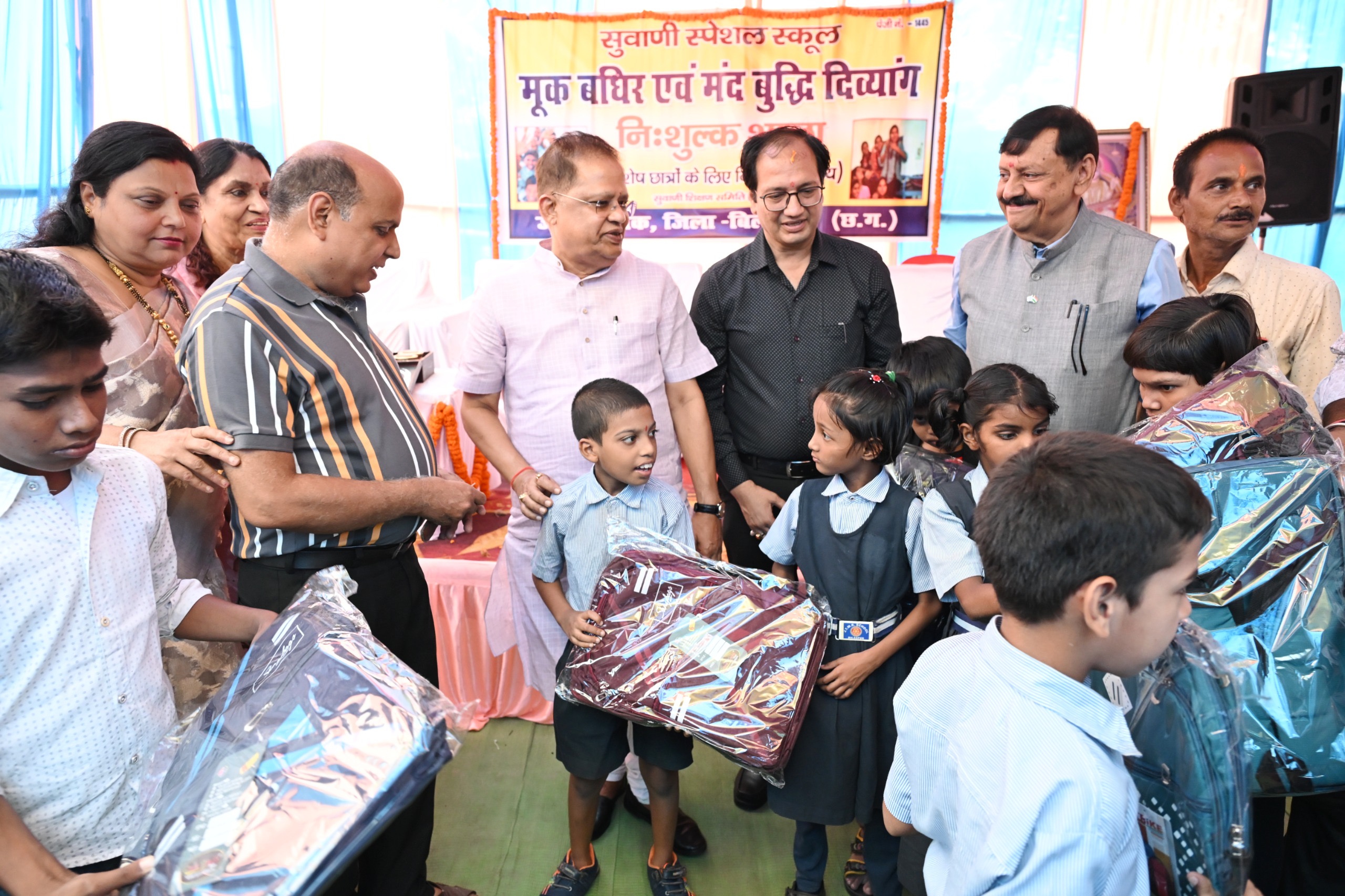 बिलासपुर, 27 जून 2025/ विधायक अमर अग्रवाल ने आज शहर के जगमल चौक में मूक बधिर एवं मंदबुद्धि दिव्यांग स्कूल का शुभारंभ किया। लगभग डेढ़ सौ बच्चे इस विशेष स्कूल में कक्षा पहली से आठवीं तक पढ़ाई कर रहे हैं। मुख्य अतिथि ने सभी बच्चों को संस्था की ओर से स्कूल बैग वितरित किये। समाजसेवी संस्था सुवाणी शिक्षण समिति द्वारा इस विशेष स्कूल का संचालन एवं बच्चों को निःशुल्क शिक्षा प्रदान की जायेगी। कलेक्टर संजय अग्रवाल एवं संयुक्त संचालक समाज कल्याण विभाग श्रद्धा मैथ्यू भी इस मौके पर उपस्थित थी। मुख्य अतिथि अमर अग्रवाल ने रथयात्रा के पावन अवसर पर स्कूल का शुभारंभ करने के लिए प्रबंधन को बधाई एवं शुभकामनाएं दी।