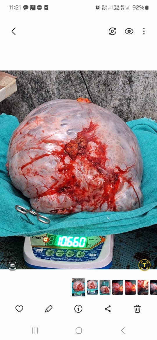बिलासपुर, 9 जुलाई 2025/कबीरधाम निवासी 65 वर्षीय लक्ष्मी चौहान, जो पिछले दो वर्षों से पेट में सूजन और लगातार बढ़ती शारीरिक परेशानियों से जूझ रही थीं, को सिम्स के प्रसूति एवं स्त्री रोग विभाग में भर्ती किया गया। मरीज को पिछले 10 दिनों से लगातार उल्टियां हो रही थीं और भोजन ग्रहण करने व मल-मूत्र त्याग में भी असमर्थता थी। परिजनों द्वारा उन्हें सिम्स लाया गया, जहाँ उनकी जांच डॉ. नेहा सिंह के द्वारा की गई।