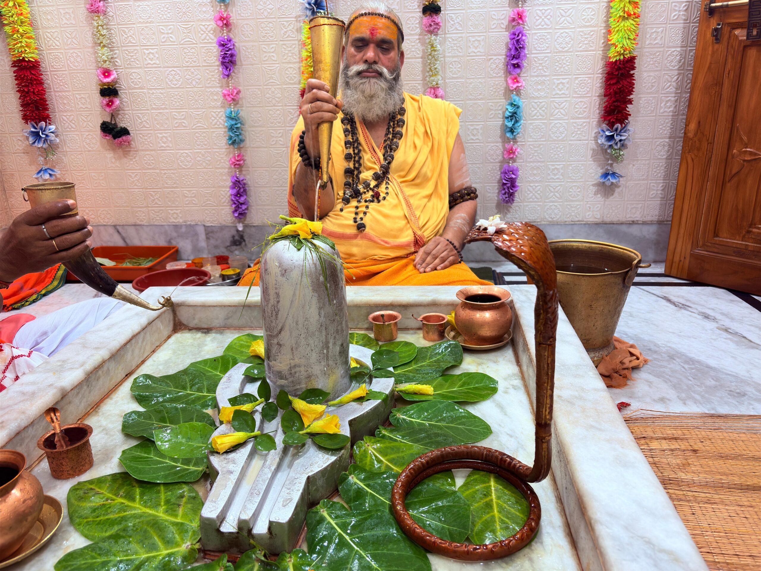 श्री पीतांबरा पीठ त्रिदेव मंदिर में छत्तीसगढ़ शासन गौ सेवा आयोग अध्यक्ष श्री विशेषर सिंह पटेल सपरिवार पहुंच कर रुद्राभिषेक किए
