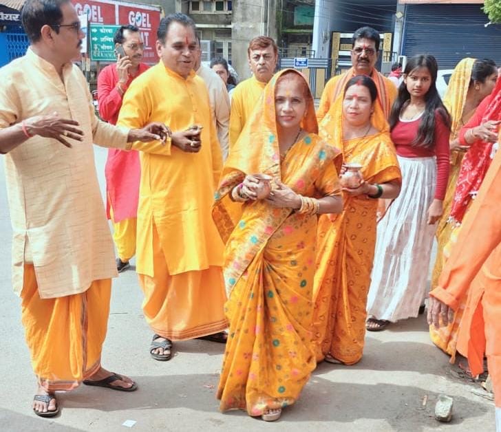 हरिहर परिक्षेत्र से बोल बम जल यात्रा का शुभारंभ अनिल टाह प्रदीप कोस्टा द्वारा आरती पूजन उपरांत रवाना किया गया। हर हर महादेव बोल बम की जय घोष के साथ पुरुष वर्ग धोती कुर्ता एवं महिलाएं पीली साड़ी परिधान में उपस्थित रहे। इस बोलबाम जल यात्रा में श्रीमती संतोषी भुवन वर्मा,डॉ शंकर यादव, रामेश्वर सोनी, संजय वर्मा,श्रीमती प्रीति हितेश चौहान, श्रीमती ममता गुप्ता, श्रीमती सीमा पंकज कुम्बज, श्रीमती आरती अजय रजक, श्रीमती विद्या किशोर दुबे, एस पी रजक, श्रीमती मोना गणेश बोडके, प्रमोद साहू, शीतल पाटनवार, संतोष चन्द्रा, शुभम साहू, राहुल साहू, श्रीमती छाया साहू, चि. आव्यांश साहू आदि उपस्थित होकर जल अभिषेक किए।