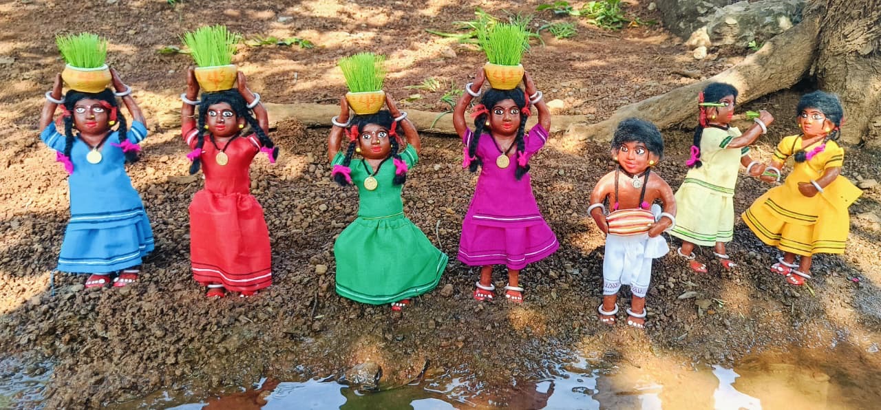 डूमरडीह उतई (दुर्ग) अभिषेक सपन ने मटपरई शिल्पकला में दिखाई भोजली तिहार