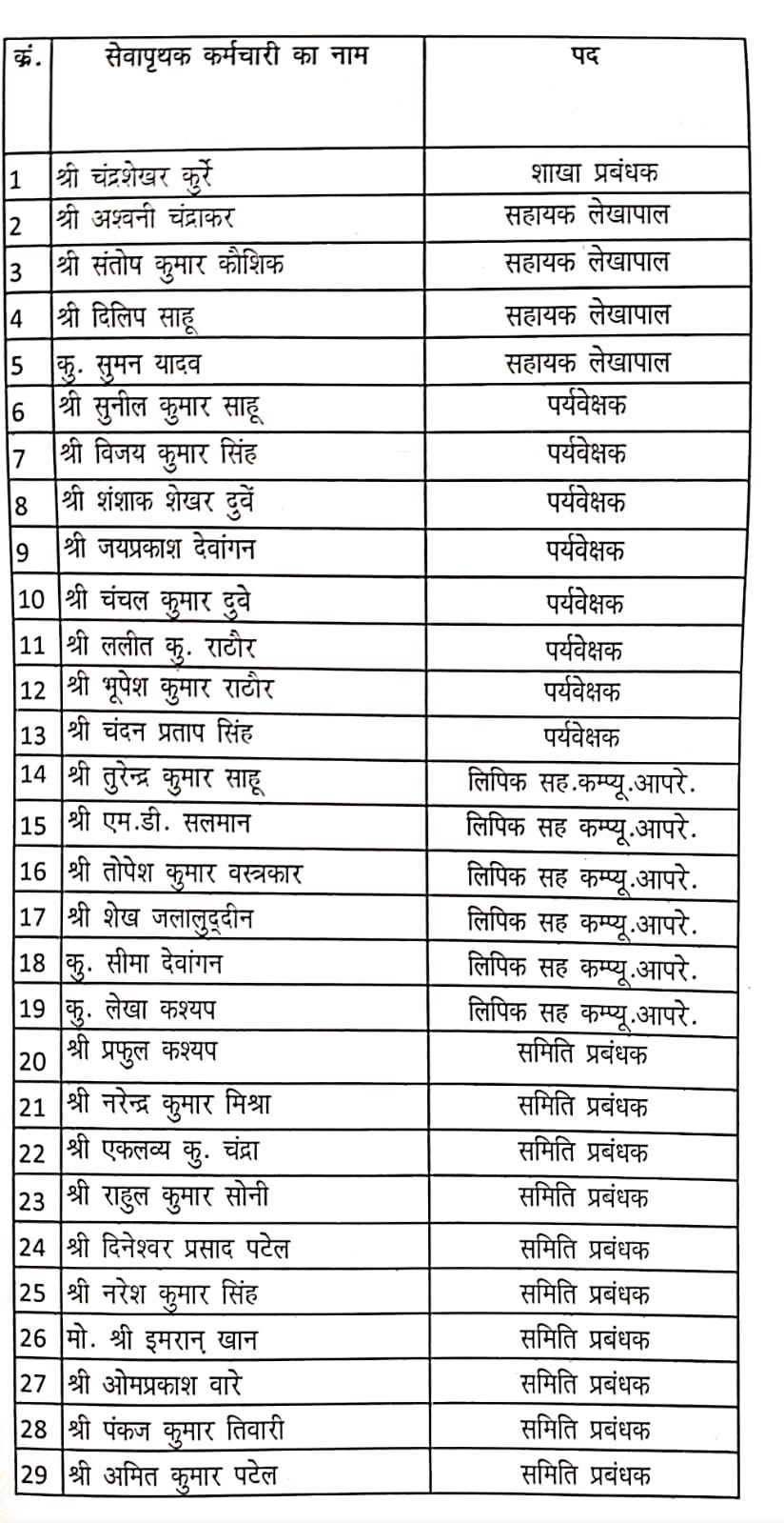 इसके उपरांत बैंक के स्टाफ कमेटी दिनांक 04/08/2025, 05/08/2025 एवं 08/08/2025 के निर्णय अनुसार 01 शाखा प्रबंधक 04 सहायक लेखापाल 08 पर्यवेक्षक 6 लिपिक सह कंप्यूटर ऑपरेटर और 10 समिति प्रबंधकों कुल 29 कर्मचारियों को पुनः सेवा से पृथक किया गया । इसी प्रकरण को उपरोक्त कर्मचारियों के द्वारा माननीय सुप्रीम कोर्ट में भी चैलेंज किया गया। जिसे माननीय सुप्रीम कोर्ट ने दिनांक 12/08/2025 को प्रकरण खारिज कर दिया गया। बैंक के द्वारा उपरोक्त प्रकरण में माननीय हाई कोर्ट में केविएट दायर कर दिया गया है।