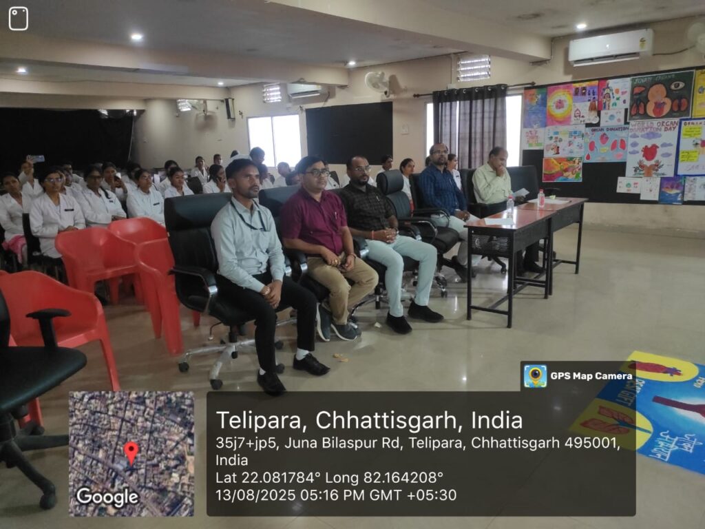 बिलासपुर। प्राचार्य महोदय प्रो. (डॉ.) जी. आर. चतुर्वेदी के मार्गदर्शन में रचना शारीर विभाग द्वारा “विश्व अंगदान एवं देहदान दिवस” के अवसर पर महाविद्यालय में एक राष्ट्रीय संगोष्ठी का आयोजन ” अंगदान एवं देहदान वर्तमान परिदृश्य, प्रक्रिया, चुनौती एवं संभावनाएं ” विषय पर दिनांक 13/08/2025 को आयोजित किया गया l