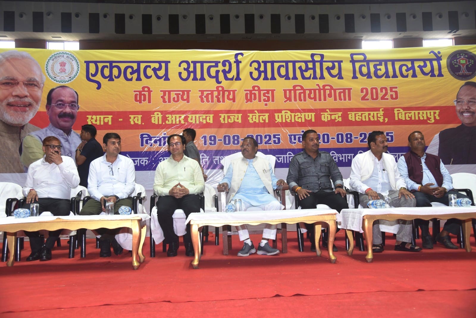 बिलासपुर, 20 अगस्त 2025/एकलव्य आदर्श आवासीय विद्यालयों की राज्य स्तरीय क्रीडा प्रतियोगिता के समापन अवसर पर आज मुख्य अतिथि के तौर पर आदिम जाति कल्याण मंत्री श्री राम विचार नेताम शामिल हुए। बहतराई स्टेडियम में आयोजित कार्यक्रम की अध्यक्षता बेलतरा विधायक श्री सुशांत शुक्ला ने की। इस अवसर पर जिला पंचायत अध्यक्ष श्री राजेश सूर्यवंशी, कलेक्टर श्री संजय अग्रवाल, सीईओ जिला पंचायत श्री संदीप अग्रवाल, श्री मोहित जायसवाल, आदिम जाति विकास विभाग के अपर संचालक श्री जितेंद्र गुप्ता, श्री तारकेश्वर देवांगन मौजूद थे। प्रतियोगिता में 796 अंक प्राप्त करके सरगुजा क्षेत्र ने ओवरऑल चैंपियन का खिताब हासिल किया वहीं दूसरे स्थान पर बस्तर क्षेत्र रहा। मंत्री श्री नेताम द्वारा विजेता छात्र-छात्राओं को पुरस्कार वितरण किया गया।