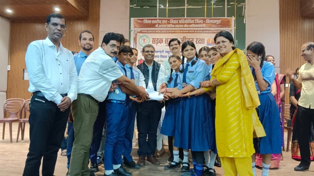 बिलासपुर,1/09/2025/”सड़क सुरक्षा जीवन रक्षा ” विषय पर जिला स्तरीय वाद-विवाद प्रतियोगिता का आयोजन शनिचरी बाजार स्थित पं. देवकीनंदन दीक्षित सभाभवन में किया गया। कार्यक्रम का शुभारंभ बिलासपुर की महापौर श्रीमती पूजा विधानी एवं जिला पंचायत अध्यक्ष श्री राजेश सूर्यवंशी ने दीप प्रज्वलित कर किया। इस अवसर पर जनप्रतिनिधियों एवं शिक्षा विभाग के वरिष्ठ अधिकारी उपस्थित रहे।प्रतियोगिता का आयोजन छत्तीसगढ़ शासन, स्कूल शिक्षा विभाग के निर्देशानुसार सड़क दुर्घटनाओं में कमी लाने और आमजन को यातायात नियमों के प्रति जागरूक करने हेतु किया गया। कार्यक्रम की थीम “सड़क सुरक्षा जीवन रक्षा” रही, जिसमें हेलमेट व सीट बेल्ट का उपयोग, तेज रफ्तार से बचाव, नशे एवं मोबाइल पर बात करते हुए वाहन न चलाने जैसे मुद्दों को प्रमुखता से उठाया गया।