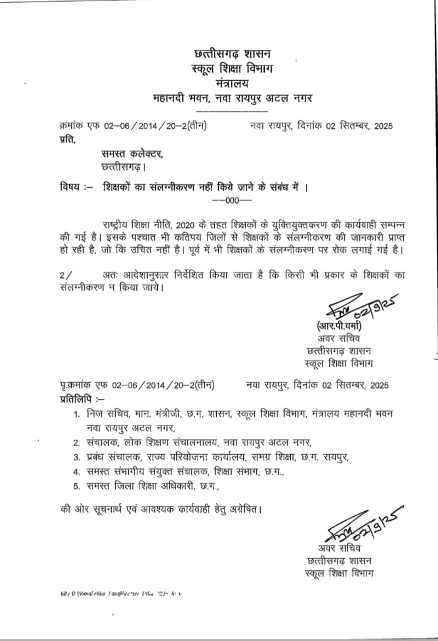 शिक्षिका सुशीला काठले की पोस्टिंग तखतपुर ब्लॉक मेथी जहां से उन्हें सीधे बिल्हा ब्लॉक के हॉस्टल में पदस्थ कर दिया गया। 17 जून 2025 को जारी आदेश में स्पष्ट है कि यदि शिक्षकों को हॉस्टल अधीक्षक का प्रभार दिया जाए तो स्कूल के पास के ही हॉस्टल में ही दिया जाए। जिससे स्कूल में भी पढ़ाई हो सके। पर शिक्षिका को कई किलोमीटर दूर सीधे दूसरे ब्लॉक में पदस्थ करने के चलते शासन के आदेश के परिपालन में स्कूल में दो कालखंड लेना संभव नहीं होगा और स्कूल में पढ़ाई भी प्रभावित होगी। बता दे बिलासपुर जिले में इसी तरह सिंगल–सिंगल आदेश निकालकर अन्य शिक्षकों को भी हॉस्टल का प्रभार दिया गया है।