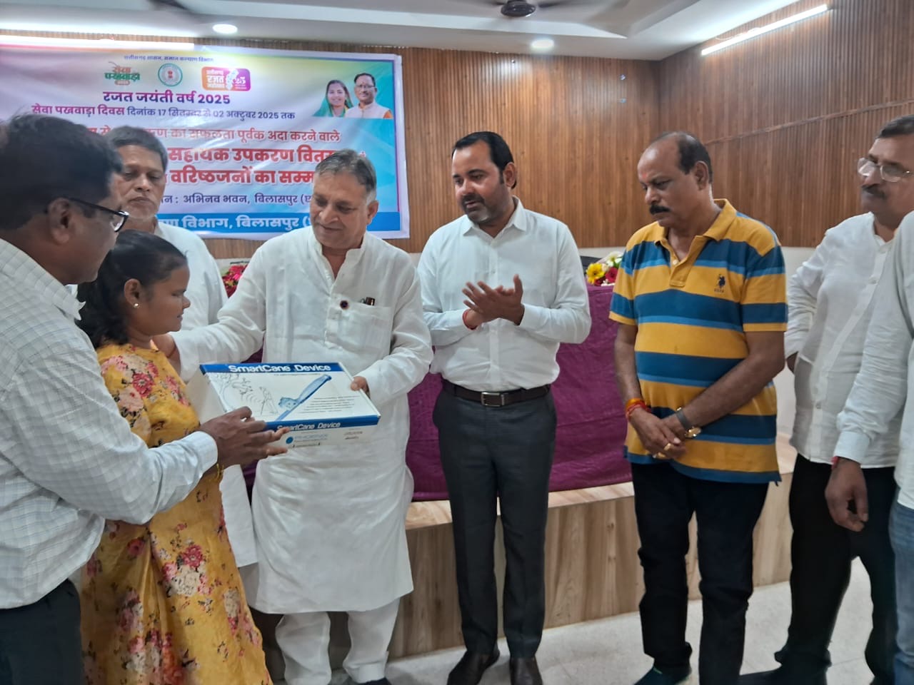 बिलासपुर, 29 सितंबर 2025/छत्तीसगढ़ राज्य के रजत जयंती वर्ष 2025 एवं सेवा पखवाड़ा कार्यक्रम के अन्तर्गत वरिष्ठ नागरिकों हेतु खेलकूद प्रतियोगिता एवं निःशक्तजन वित्त विकास निगम से प्राप्त ऋण का सफलता पूर्वक अदा करने वाले दिव्यांगजनों का बृहस्पति बाजार स्थित अनुभव भवन में आयोजित समारोह में सम्मान किया गया। विशेष आवश्यकता वाले दिव्यांगजनों को सहायक उपकरण भी प्रदाय किये गये। इस अवसर पर मुख्य अतिथि श्री लोकेश कावड़िया अध्यक्ष निःशक्तजन वित्त विकास निगम छत्तीसगढ़ । उन्होंने अपने उद्बोधन में कहा कि राज्य में दिव्यांगजनों के लिये रोजगार स्वरोजगार के लिये उनके अनुकुल व्यवसाय हेतु कार्ययोजना तैयार की जा रही है ताकि उनका इन व्यवसाय से जीवकोपार्जन का साधन उपलब्ध हो सके।