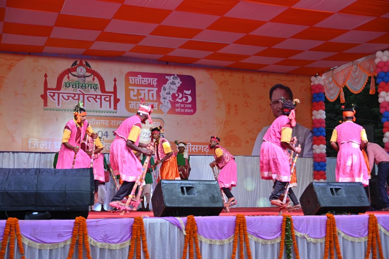 कलेक्टर लीना कमलेश मंडावी ने स्वागत भाषण दिया। उन्होंने कहा कि छत्तीसगढ़ गठन के 25 वर्ष पूर्ण होने पर राज्य सरकार द्वारा रजत जयंती वर्ष मनाया जा रहा है। जीपीएम नया जिला बनने के बाद से यहां विकास कार्यों, संस्कृति और जनकल्याण के क्षेत्र में उल्लेखनीय प्रगति हुआ है। उन्होंने जिला स्तरीय राज्योत्सव में विभिन्न विभागों द्वारा विकास पर आधारित प्रदर्शनी लगाने, बच्चों के मनोरंजन के लिए झूले, फूड स्टॉल आदि लगाए जाने की जानकारी दी। राज्योत्सव के पहले दिन स्कूली छात्र-छात्राओं और लोक कलाकारों द्वारा पारंपरिक वेशभूषा एवं वाद्य यंत्रों के साथ गेंड़ी, सुआ, मोर छत्तीसगढ़ महतारी आदि लोक नृत्य एवं लोक गीत की शानदार प्रस्तुति दी गई। समारोह में प्रसिद्ध लोक गायन संजय सुरीला लोक कला मंच की शानदार प्रस्तुति दी गई।
