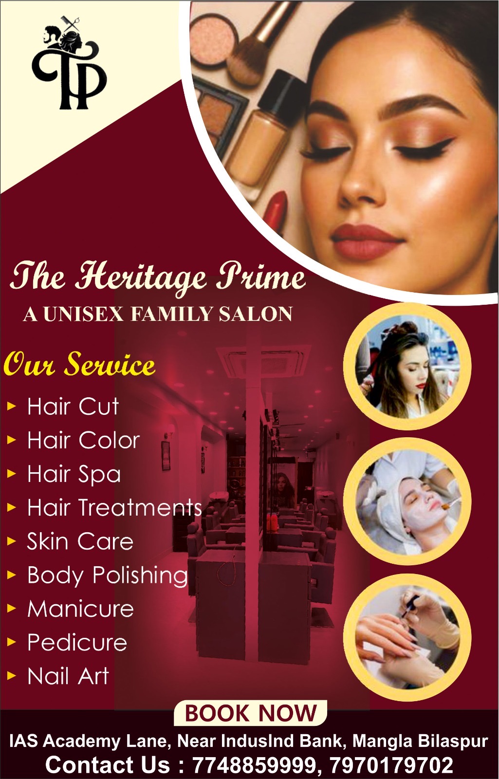 विदित हो कि हमारे सभी वर्कर मुंबई बैंगलोर से ट्रेनिंग लेकर आए हुए हैं, जिनके पास प्रोफेशनल एक्सपीरियंस और मॉडर्न ब्यूटी टेक्निक्स का ज्ञान है।ज्ञात हो कि यह मुंबई की संस्था की ब्रांच है, इसलिए यहाँ की सेवाएँ और स्टैंडर्ड्स शहर के टॉप लेवल सैलून की तरह हैं। हमारा वादा: हम न सिर्फ आपके लुक को बदलते हैं, बल्कि आपके आत्मविश्वास को भी नया रंग देते हैं। एक बार “द हेरिटेज प्राइम – यूनिसेक्स फैमिली सैलून” मंगला चौक में सहभागिता प्रदानकर महसूस करें ।