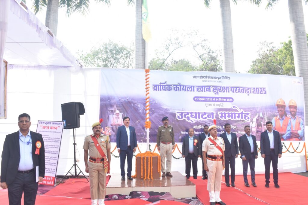 बिलासपुर।दिनांक 01 दिसंबर से 14 दिसंबर 2025 तक आयोजित वार्षिक कोयला खान सुरक्षा पखवाड़ा 2025 का उद्घाटन दिनांक 01.12.2025 को एसईसीएल मुख्यालय प्रांगण में अध्यक्ष सह प्रबंध निदेशक हरीश दुहन ने निदेशक तकनीकी (संचालन) एन. फ्रैंकलिन जयकुमार, निदेशक (कार्मिक) बिरंची दास, मुख्य सतर्कता अधिकारी हिमांशु जैन, विभिन्न विभागाध्यक्षों, अधिकारियों-कर्मचारियों, विभिन्न श्रमसंघ प्रतिनिधियों की उपस्थिति में सुरक्षा ध्वज फहराकर किया गया।