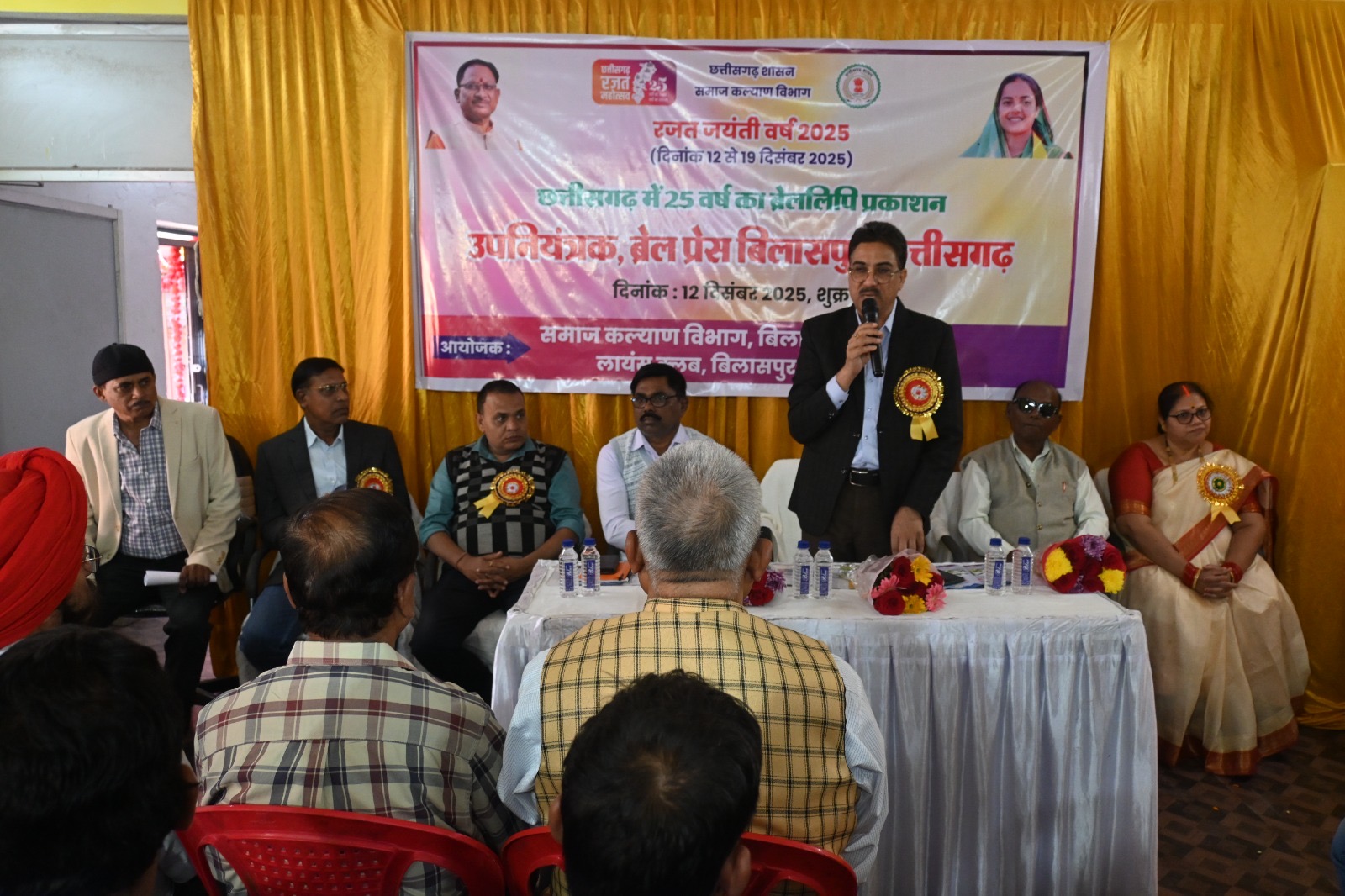 बिलासपुर, 12 दिसम्बर 2025/छत्तीसगढ़ रजत जंयती वर्ष 2025 के अवसर पर विशेष उपलब्धियों को प्रदर्शित करते हुये विशेष सप्ताह का आयोजन किया जा रहा है। इसी क्रम में ब्रेल लिपि के प्रकाशन एवं उपलब्धियों पर आधारित विशेष कार्यक्रम का आयोजन उपनियंत्रक ब्रेल प्रेस कार्यालय में किया गया। कार्यक्रम की शुरूआत दृष्टिबाधित बालिकाओं द्वारा राज्यगीत एवं सरस्वती वंदना गीत की प्रस्तुति से की गई।
