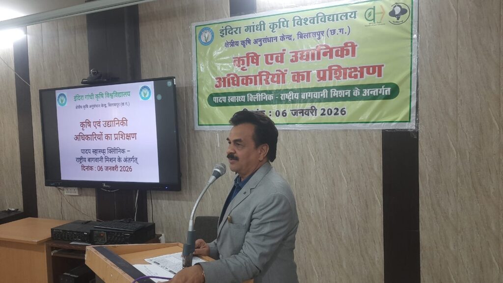 बिलासपुर। क्षेत्रीय कृषि अनुसंधान केंद्र, बिलासपुर द्वारा राष्ट्रीय बागवानी मिशन के प्रायोजन से बिलासपुर विकासखंड के कृषि एवं उद्यानिकी अधिकारियों हेतु पौध संरक्षण विषय पर “फसलों में लगने वाले रोग एवं कीट की पहचान एवं वैज्ञानिक प्रबंधन” विषयक एकदिवसीय प्रशिक्षण कार्यक्रम का आयोजन किया गया। प्रशिक्षण का उद्देश्य अधिकारियों को रोग-कीटों की समय पर पहचान, उनके वैज्ञानिक एवं व्यावहारिक प्रबंधन तथा नवीन तकनीकों से अवगत कराना था, जिससे वे किसानों को प्रभावी परामर्श दे सकें।