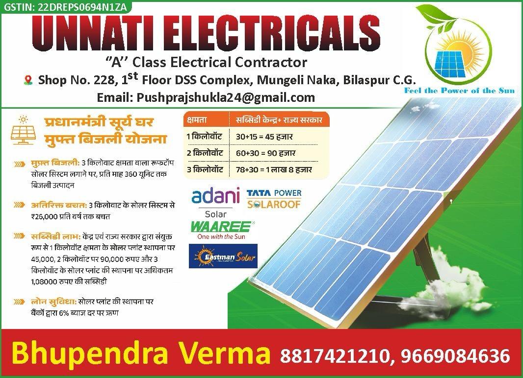 प्रधानमंत्री सूर्यघर मुफ्त बिजली योजना अंतर्गत अध्यक्ष जनपद पंचायत राजनांदगांव ने अपने निवास पर स्थापित किया सोलर पैनल