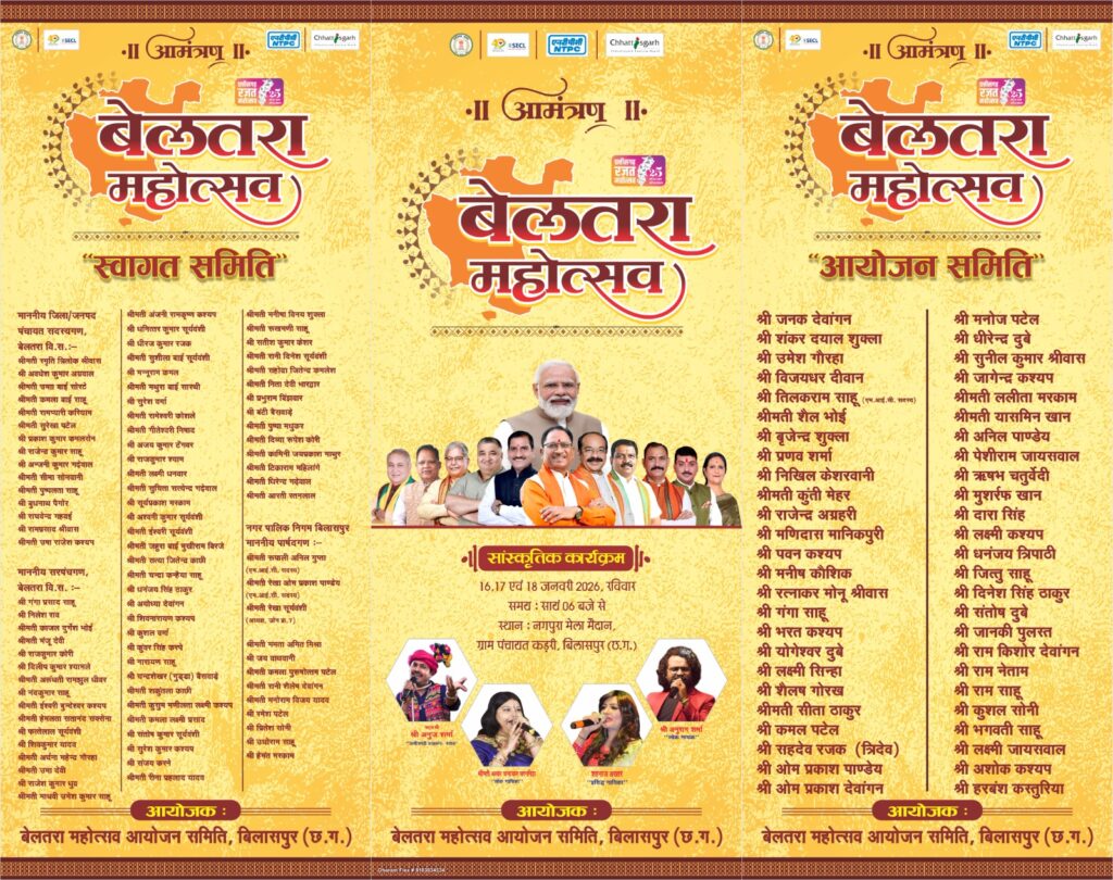 जिले में पहली बार बेलतरा महोत्सव का भव्य आयोजन – 16 से 18 जनवरी तक चलने वाले सांस्कृतिक आयोजन में जुटेंगे प्रदेश के दिग्गज कलाकार