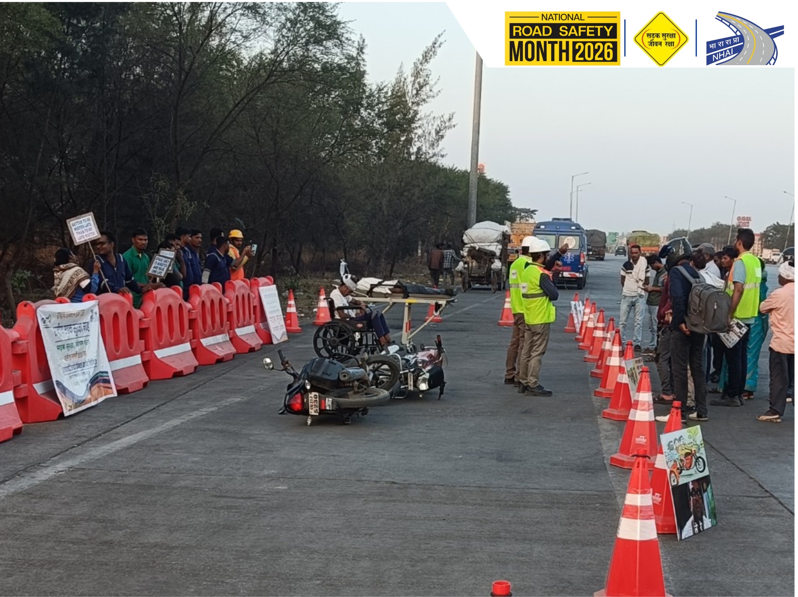 अभियान के दौरान सड़क दुर्घटना की स्थिति में त्वरित एवं प्रभावी बचाव कार्यों के लिए लाइव एक्सीडेंट डेमोस्ट्रेशन (मॉक-ड्रिल) का आयोजन किया गया। इस दौरान एम्बुलेंस की पहुँच, क्रेन द्वारा मार्ग से बाधा हटाने तथा घायलों को प्राथमिक उपचार देने की प्रक्रिया की जानकारी दी गई। साथ ही सुरक्षित यात्रा के लिए हेलमेट, सीट बेल्ट के महत्व को बताया गया।