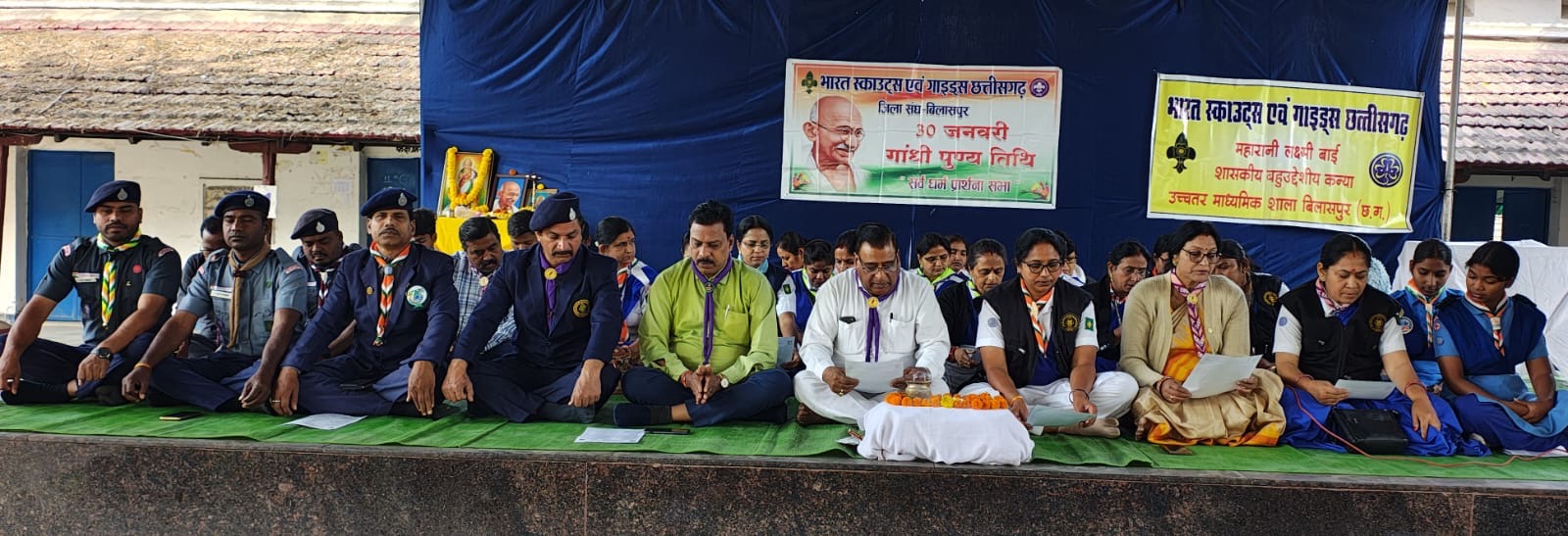 इस अवसर पर गांधी चौक, बिलासपुर स्थित महात्मा गांधी जी की प्रतिमा पर माल्यार्पण कर उनके बलिदान को स्मरण किया गया। तत्पश्चात सेजेस महारानी लक्ष्मी बाई विद्यालय में गांधी जी की स्मृति में “सर्वधर्म प्रार्थना सभा” का आयोजन किया गया, जिसमें जिले के 200 से अधिक स्काउट्स, गाइड्स, रोवर्स, रेंजर्स, स्काउटर एवं गाइडर उपस्थित रहे।