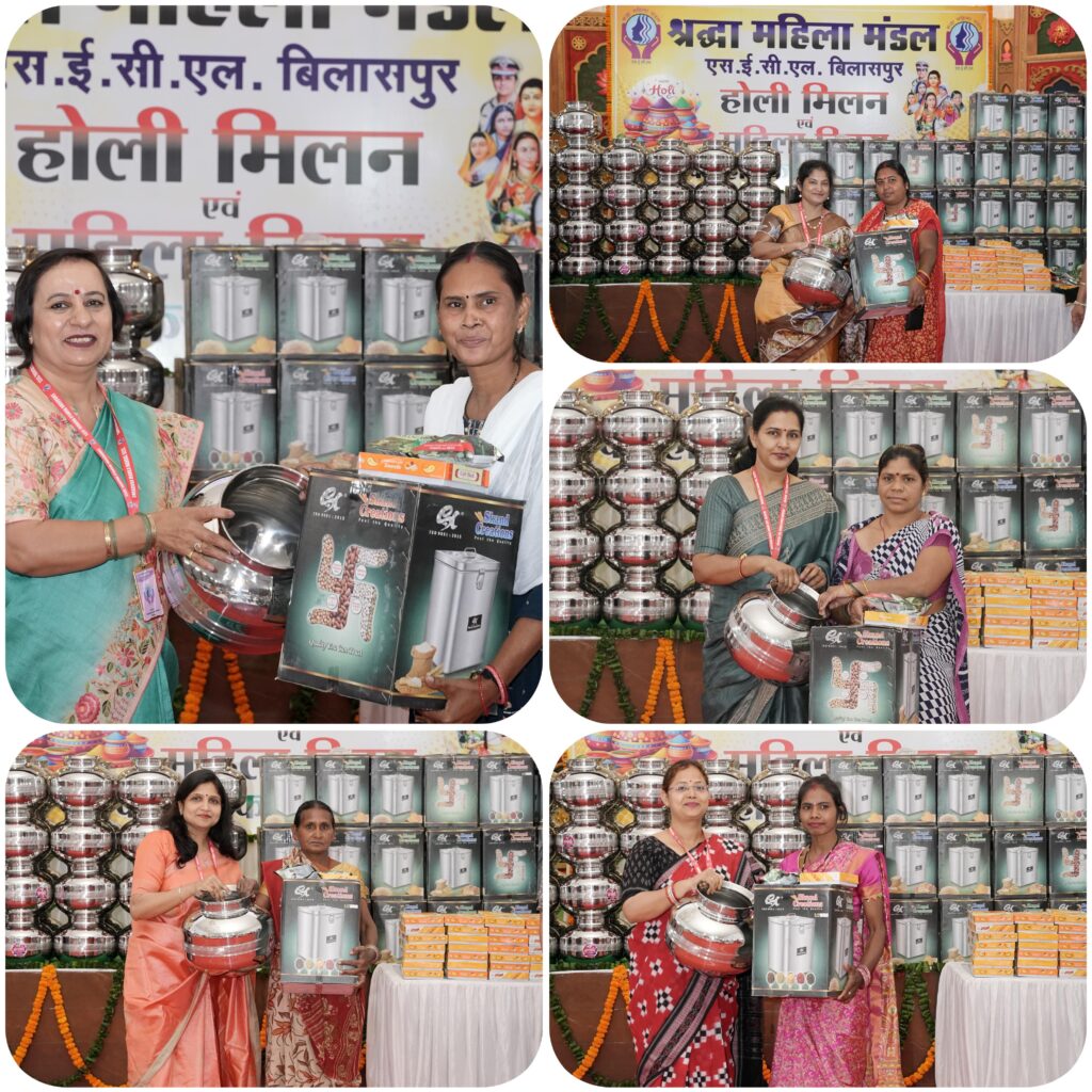 बिलासपुर।श्रद्धा महिला मंडल द्वारा दिनांक 26 फ़रवरी 2026 को वसंत विहार के रवीन्द्र भवन में एसईसीएल की महिला संविदा कर्मियों के साथ होली मिलन एवं महिला दिवस समारोह बड़े हर्षोल्लास के साथ मनाया गया। यह कार्यक्रम श्रद्धा महिला मंडल की अध्यक्षा श्रीमती शशि दुहन जी एवं उपाध्यक्षा गणों के मार्गदर्शन में आयोजित किया गया। इस अवसर पर नेहरू शताब्दी कॉलोनी, वसंत विहार कॉलोनी एवं इंद्रा विहार कॉलोनी में कार्यरत लगभग 102 महिला संविदा कर्मियों ने उत्साहपूर्वक भाग लिया। कार्यक्रम की शुरुआत सभी संविदा बहनों का रोली टीका लगाकर स्वागत करने से हुई। इसके पश्चात सभी को होली और महिला दिवस की हार्दिक शुभकामनाएँ दी गईं।अध्यक्षा श्रीमती शशि दुहन भाभी जी ने इन कर्मठ बहनों की समर्पण एवं परिश्रम की सराहना की और उन्हें असली नारी शक्ति कहा।